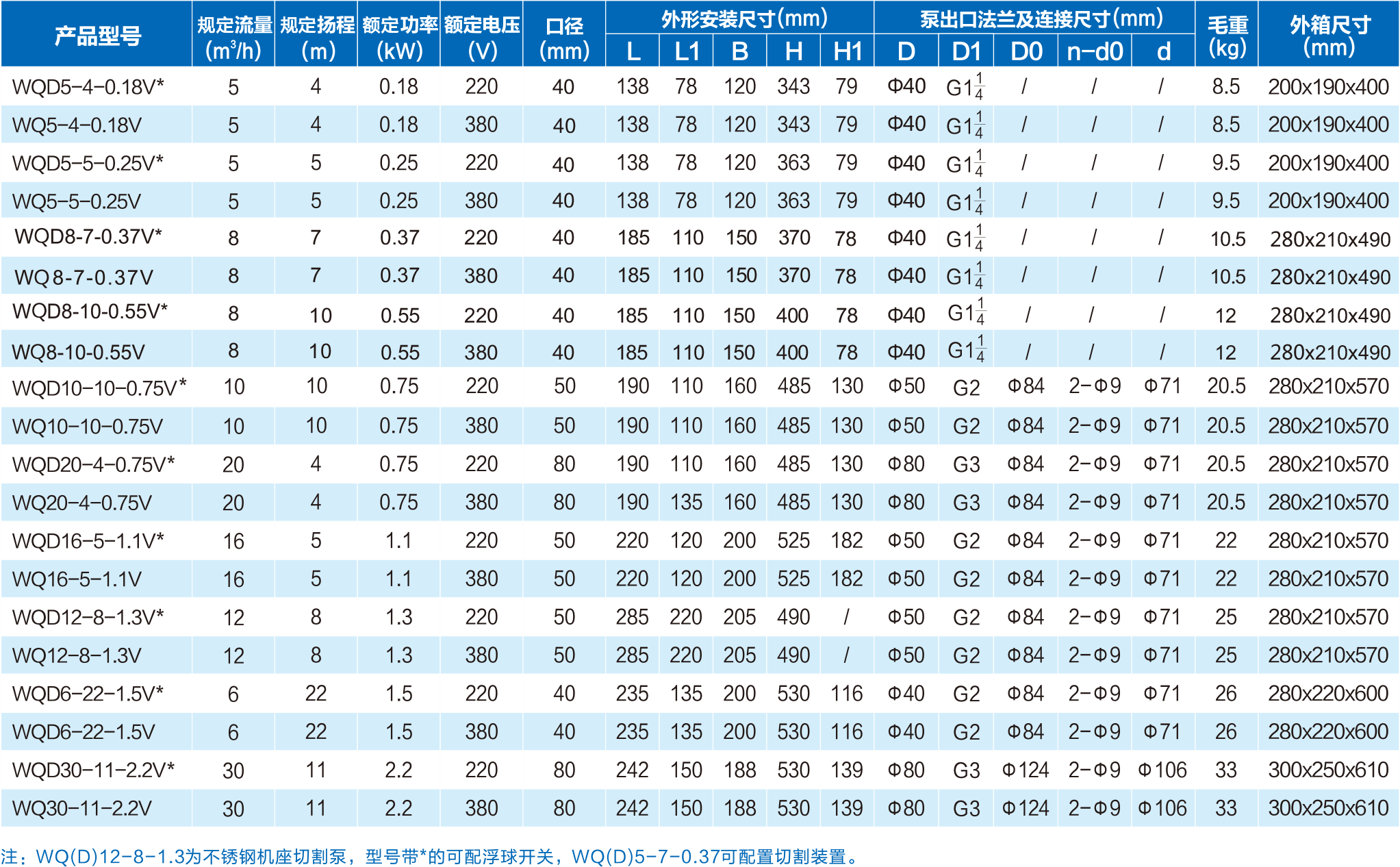 WQ(D)污水污物潛水電泵其上部是單/三相異步電機,下部是蝸殼式泵部分,中部是帶雙端面優(yōu)質(zhì)機械密封的油室。各固定止口采用“〇”形耐油橡膠密封圈作靜密封。葉輪為半開式。除能代替普通的QX泵使用外,也可用于輕度污染的廢水,臟水。WQ為單。雙流道式葉輪,流道間隙大,通過能力強,廣泛適用于抽送糞便,及含有紙屑、雜質(zhì)、泥沙等固體顆粒的混合液。